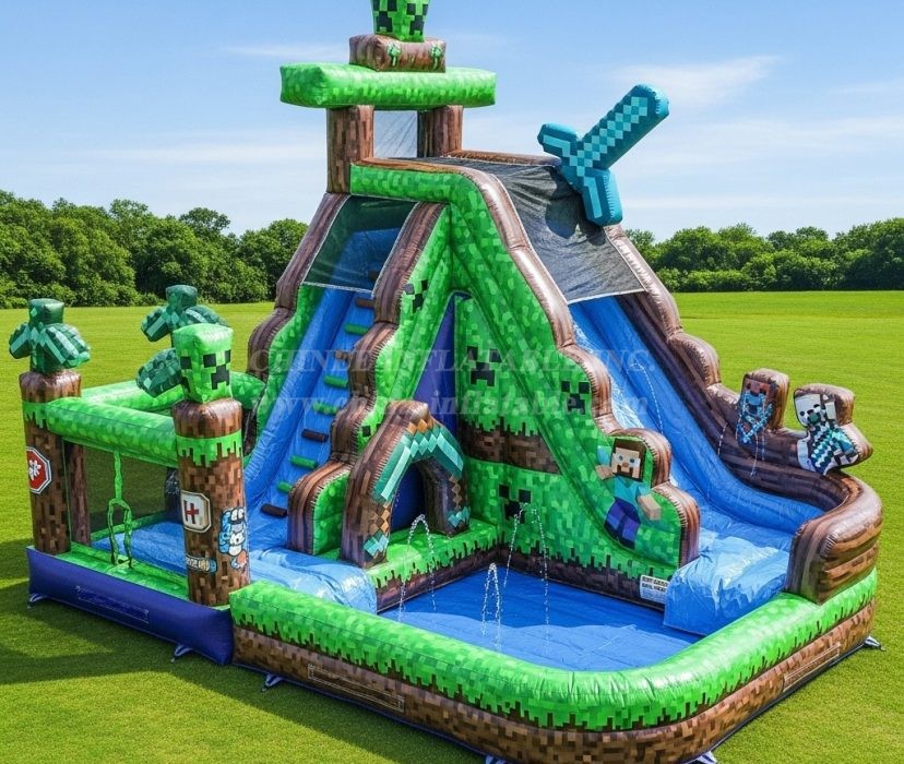 T8-9304 Minecraft Theme Inflatable Water Slide